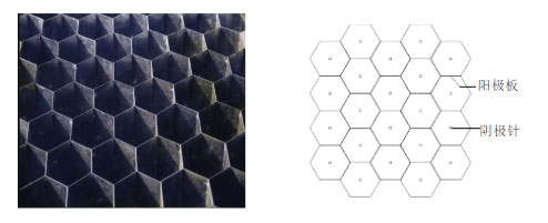 六角蜂巢電場,工藝簡單,成本高。其工作原理與圓筒蜂巢電場相同,但陰極到陽極距離不同,電子分布不均勻,長期使用會影響處理效果。